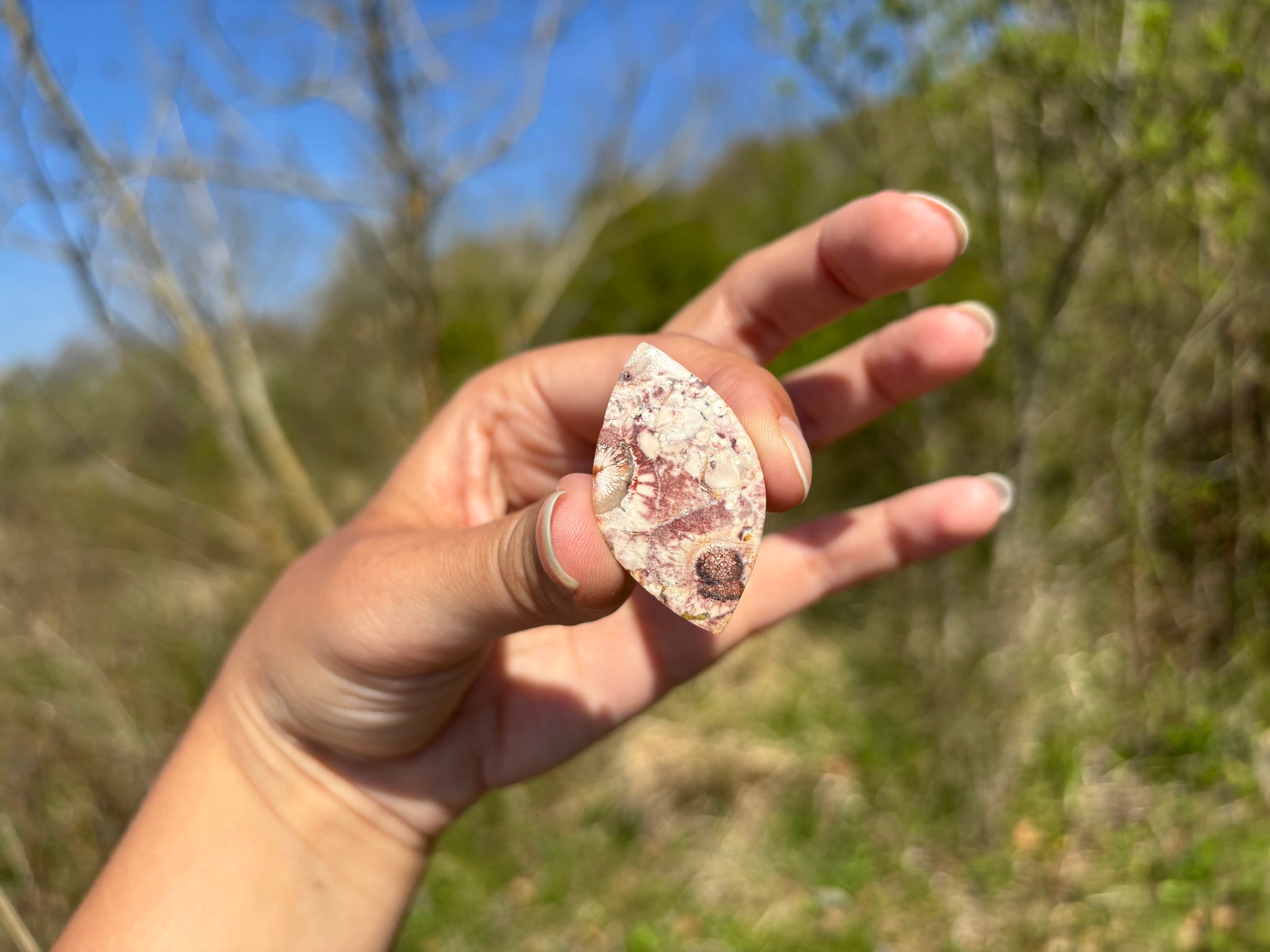 Cabochon en jaspe oeil d'oiseau.
