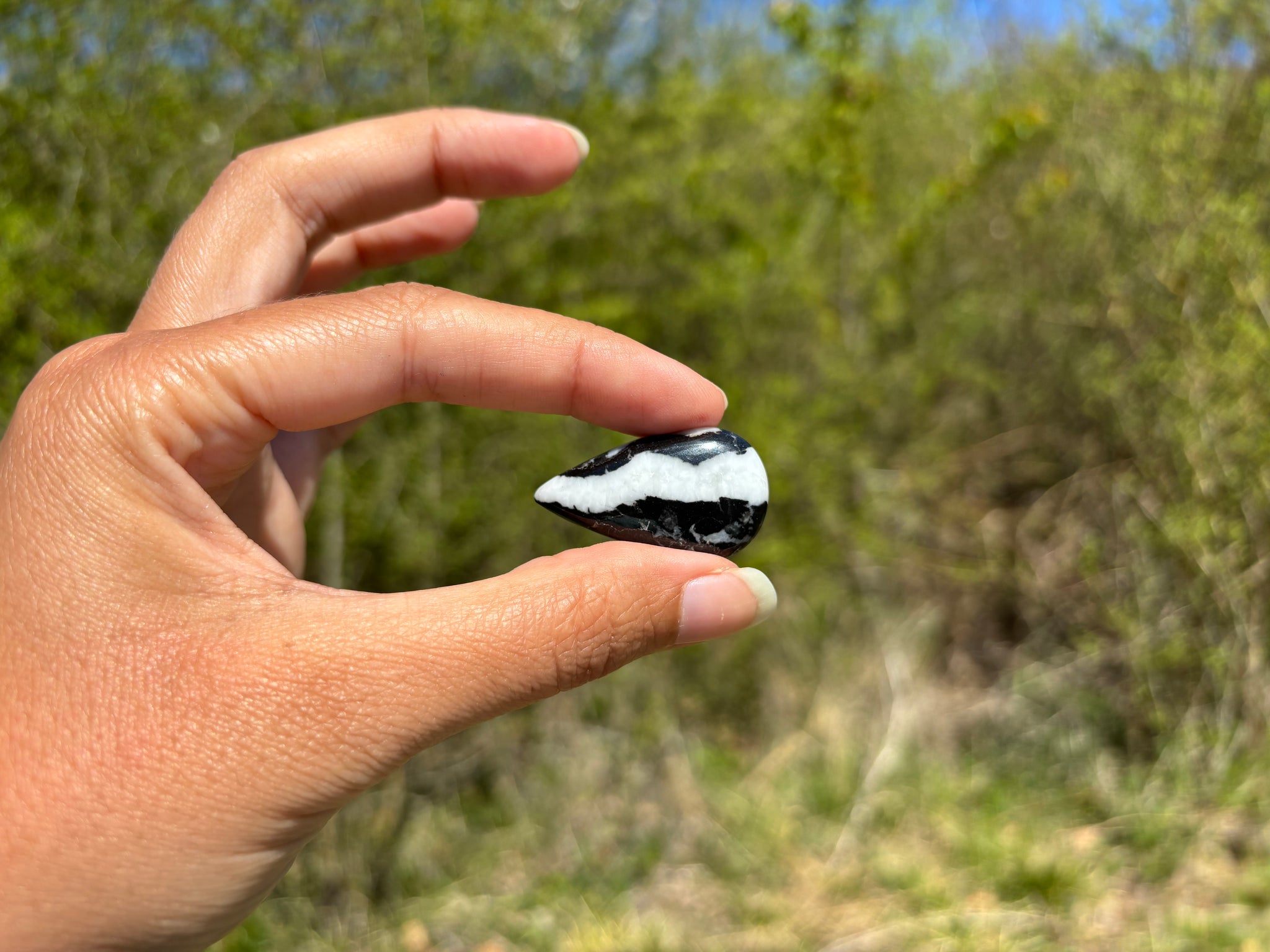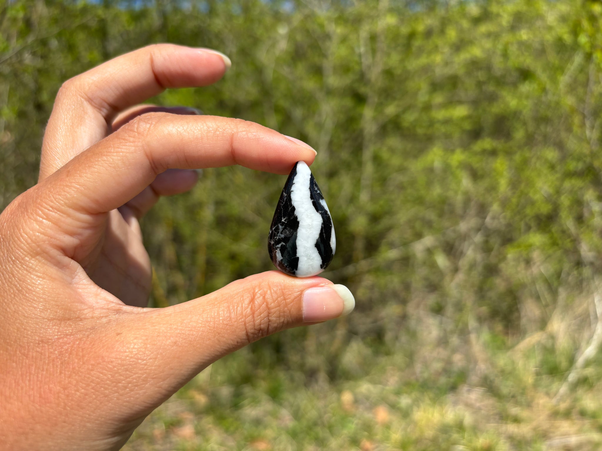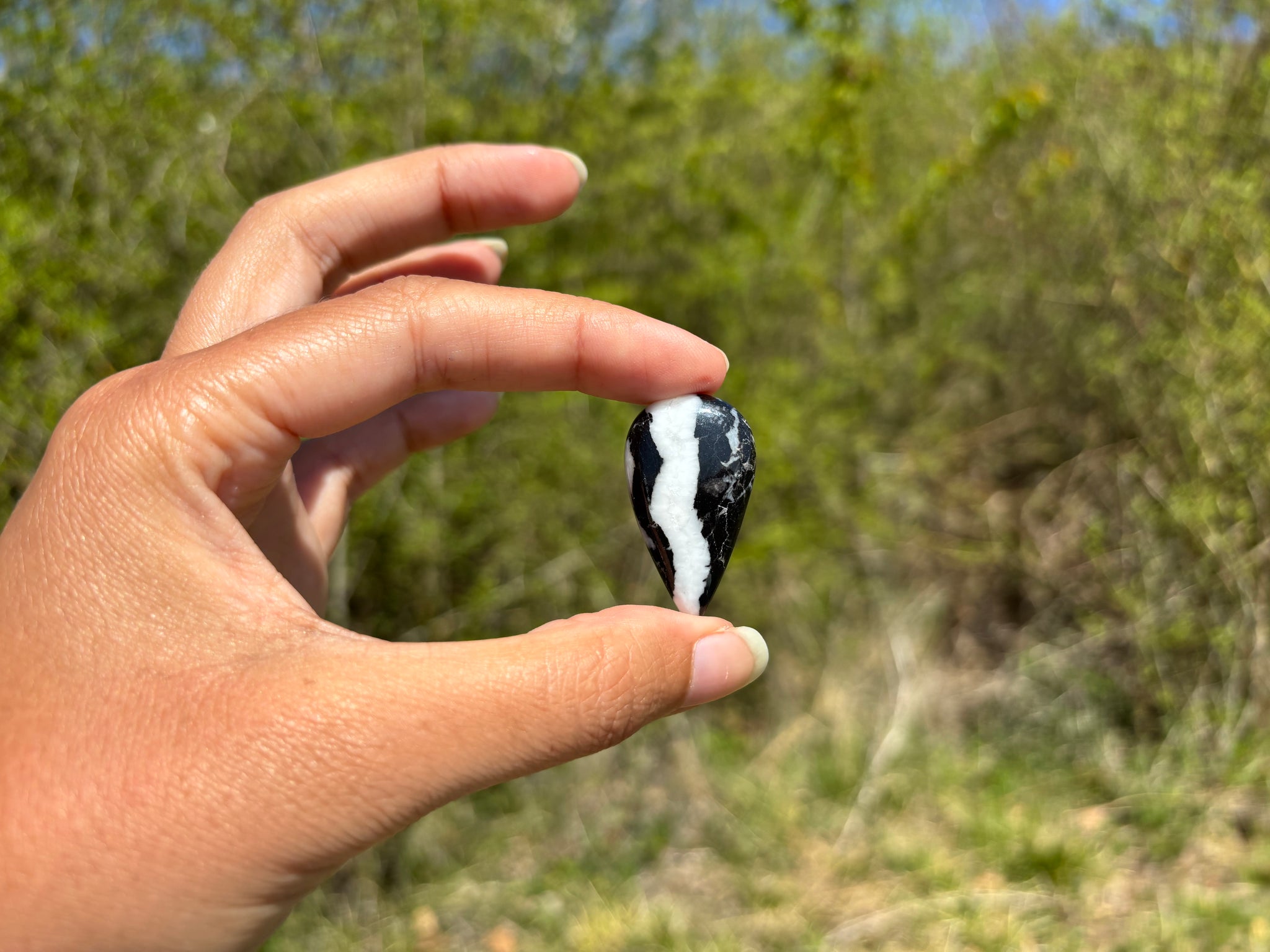 Cabochon en jaspe zebré noir.