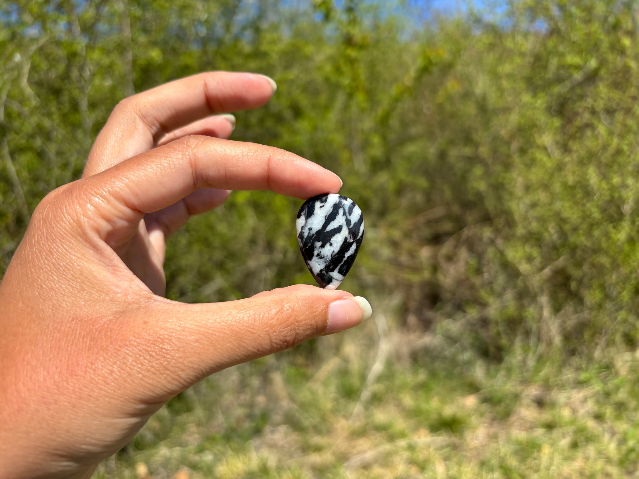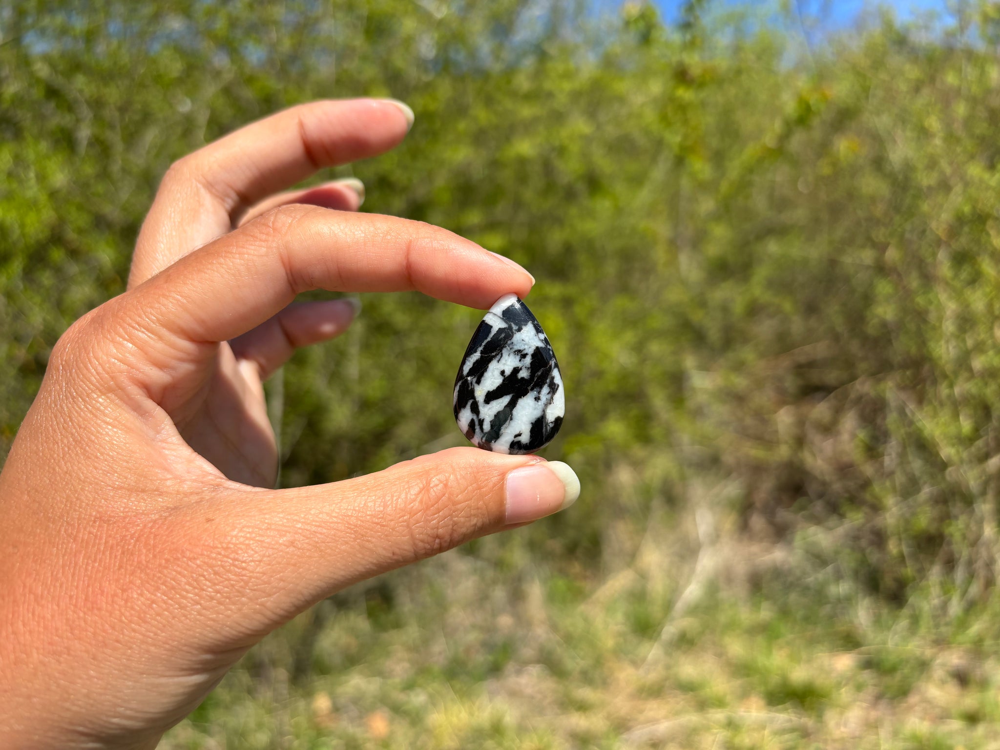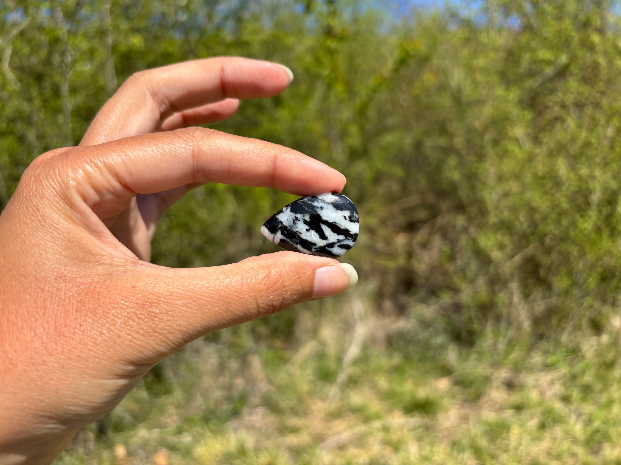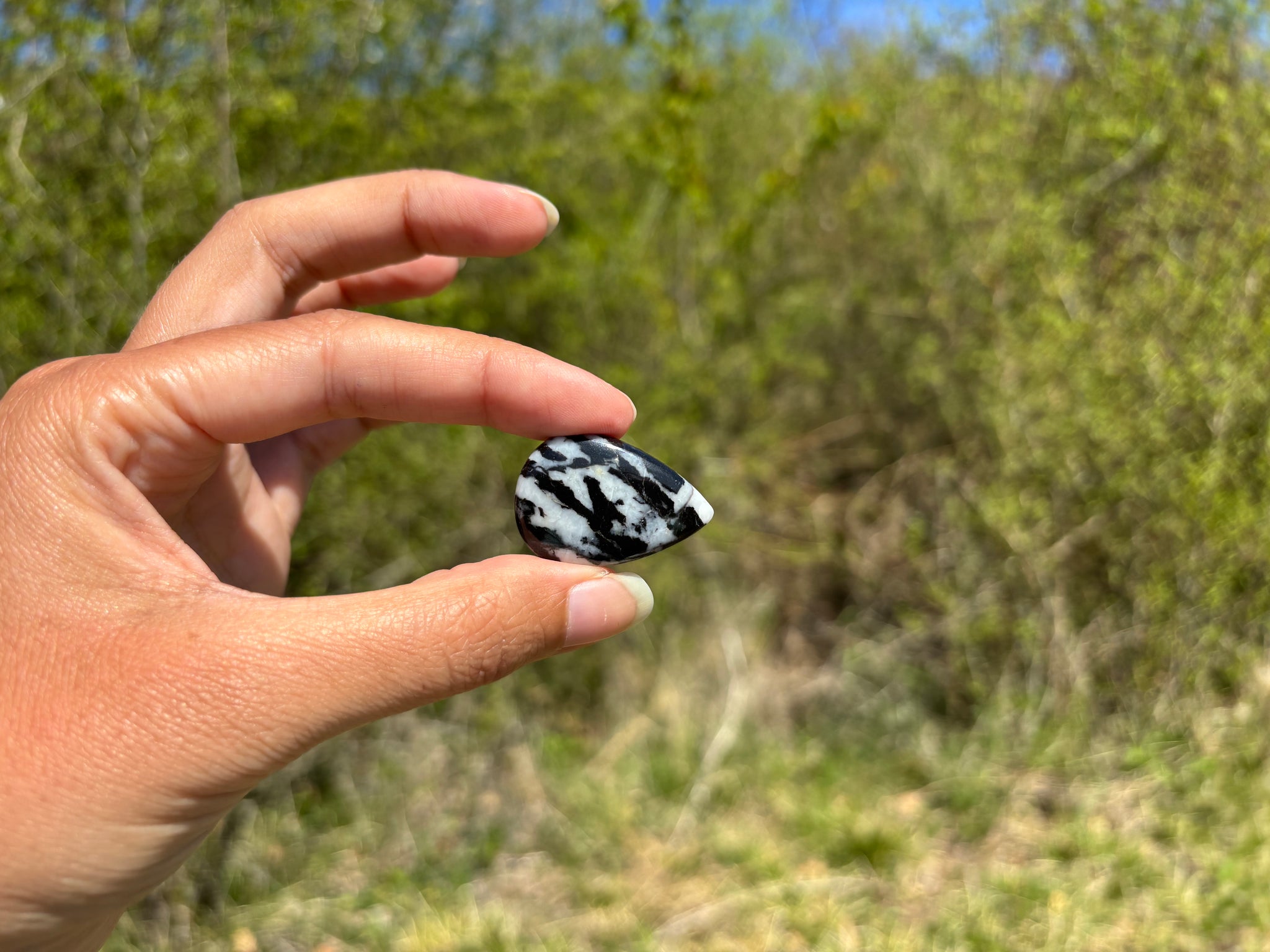 Cabochon en jaspe zebré noir.