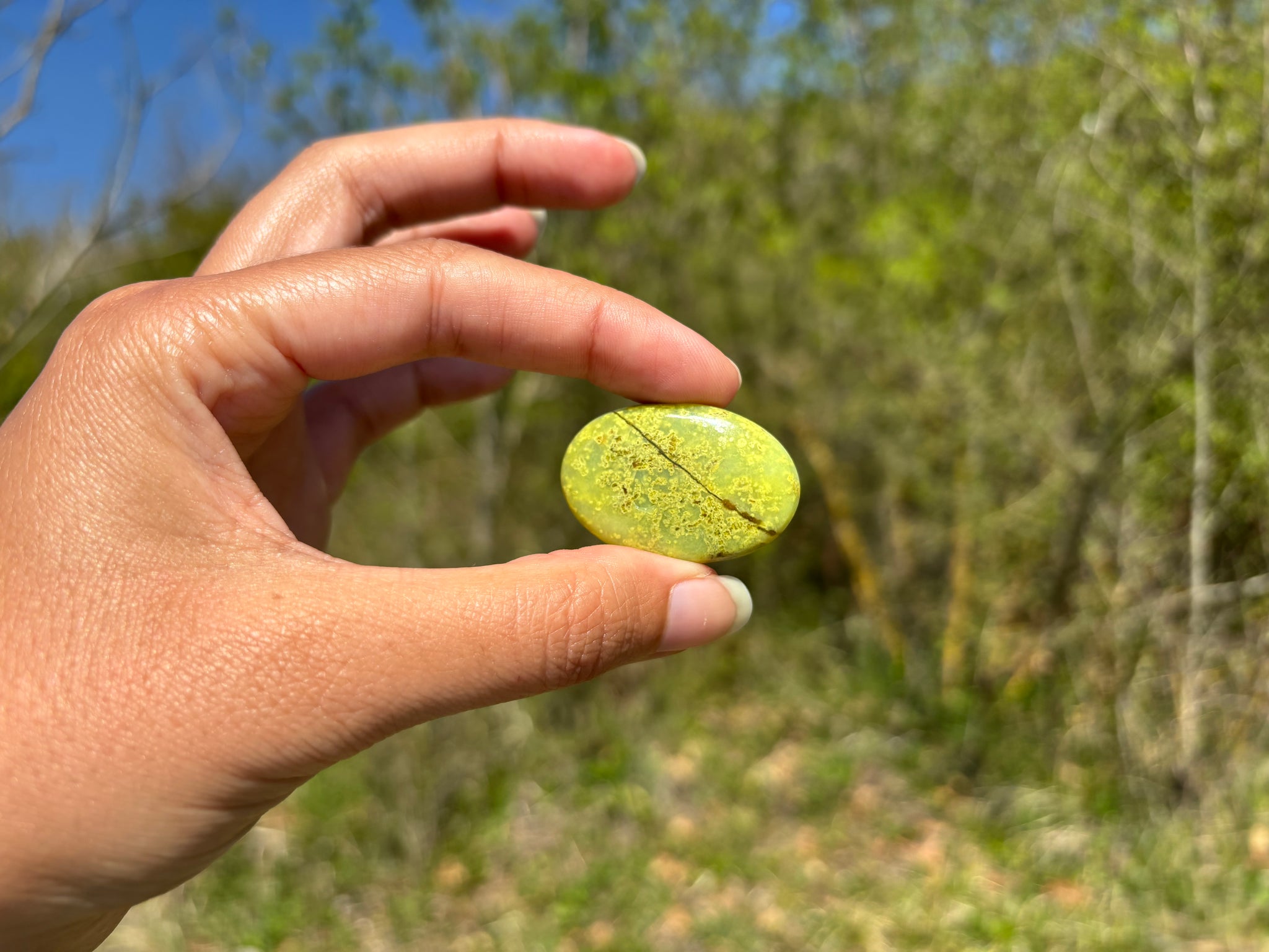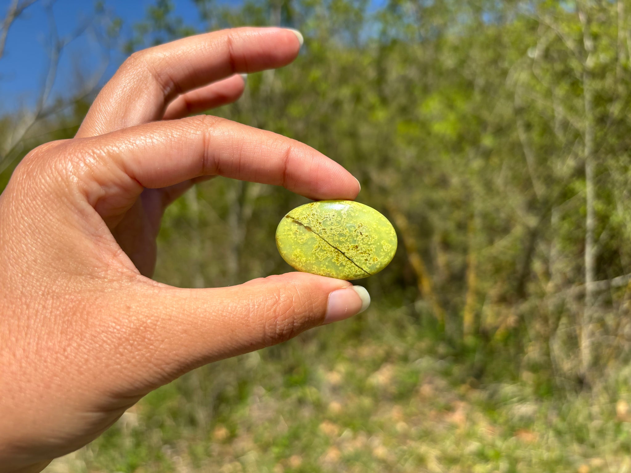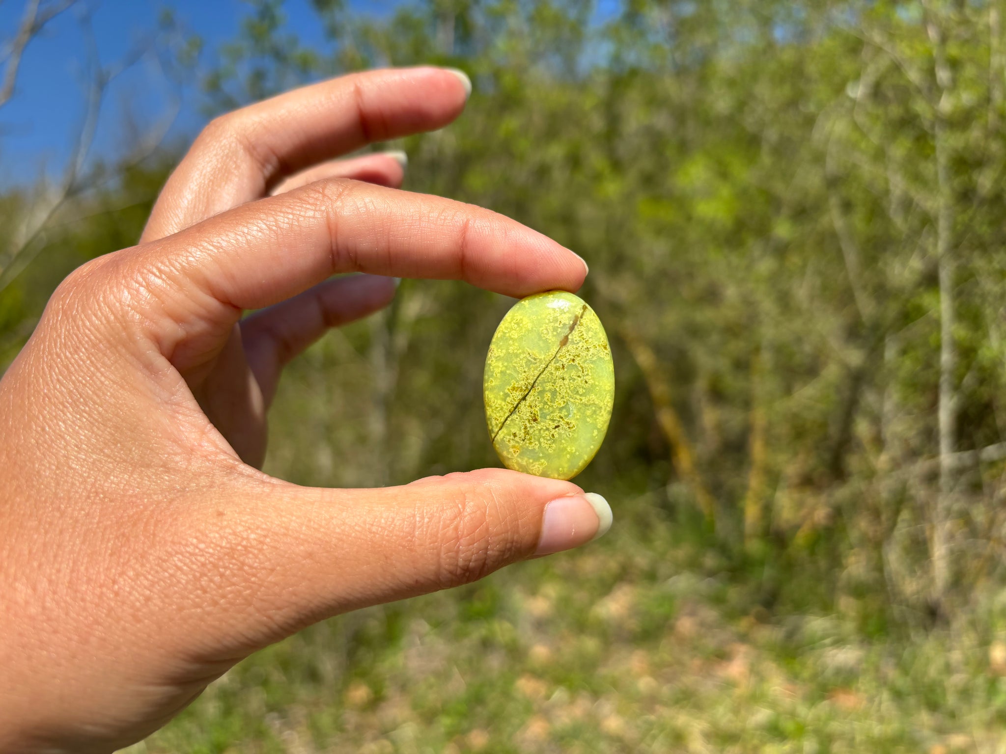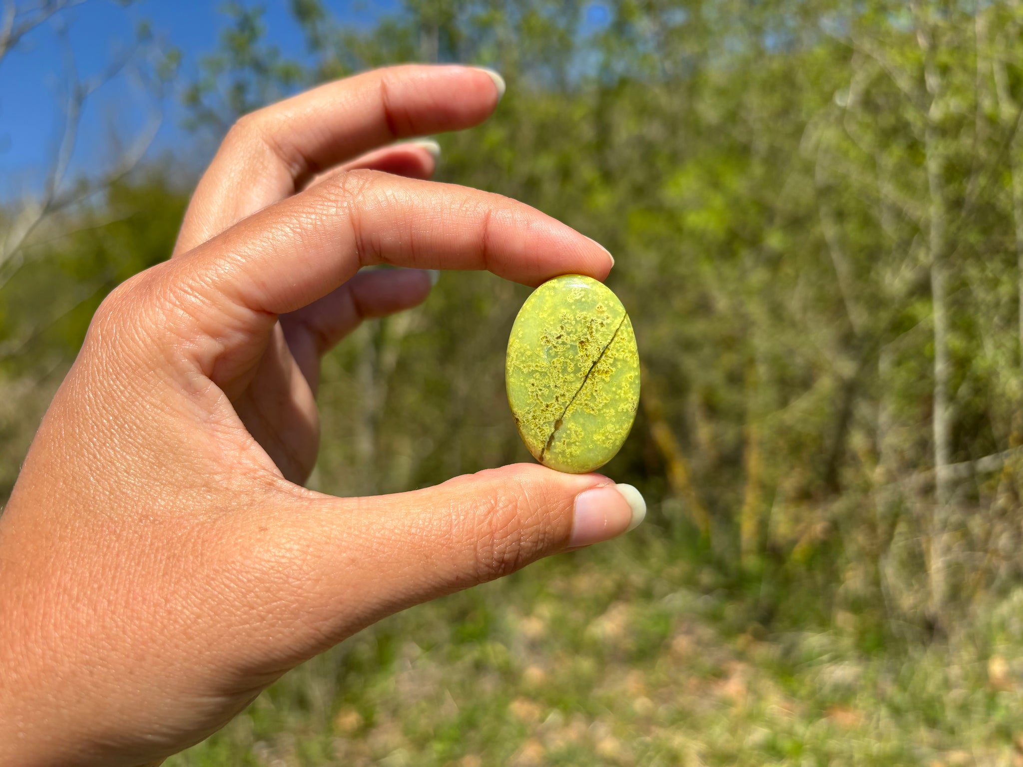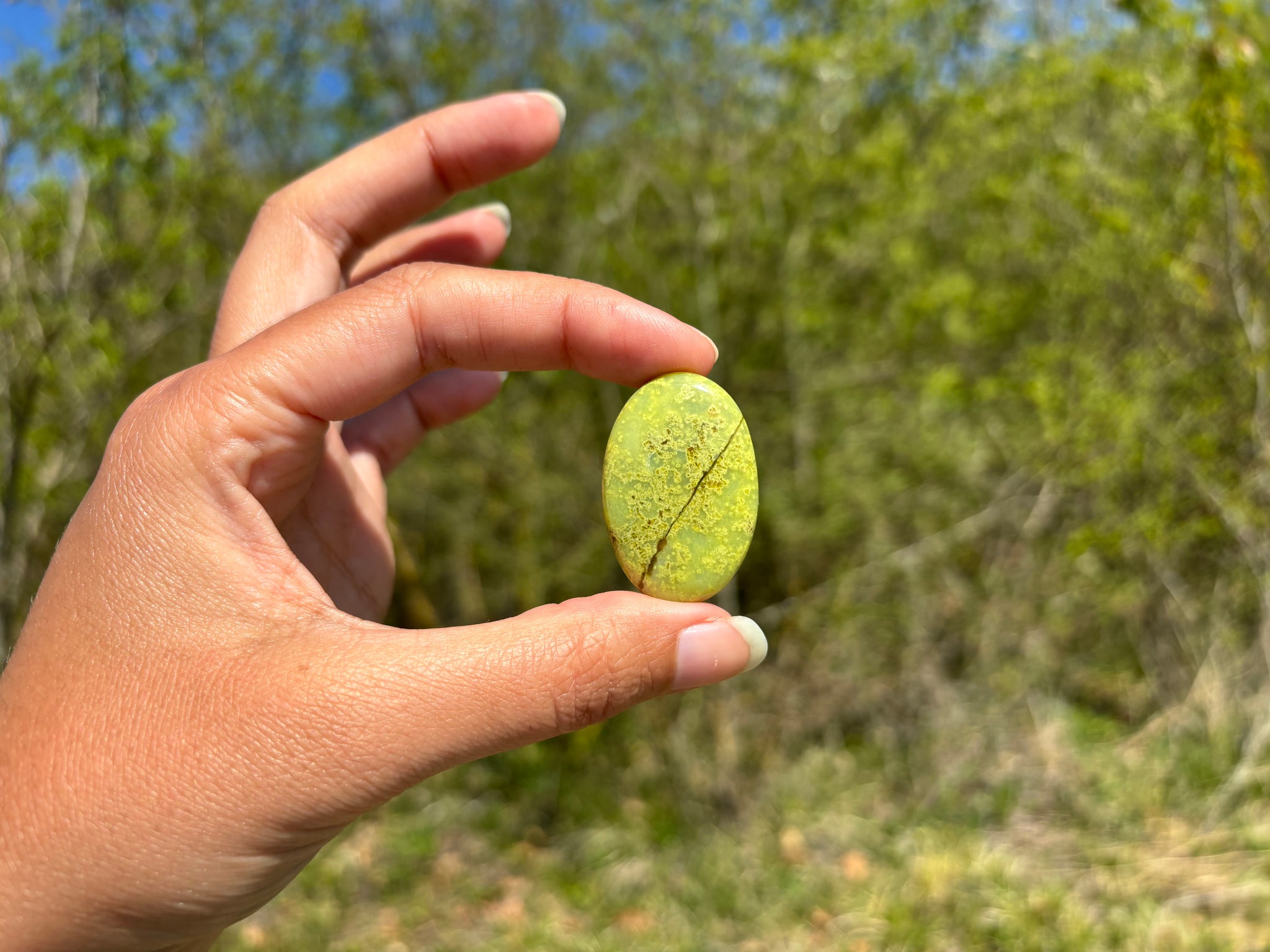 Cabochon en opale commune verte.