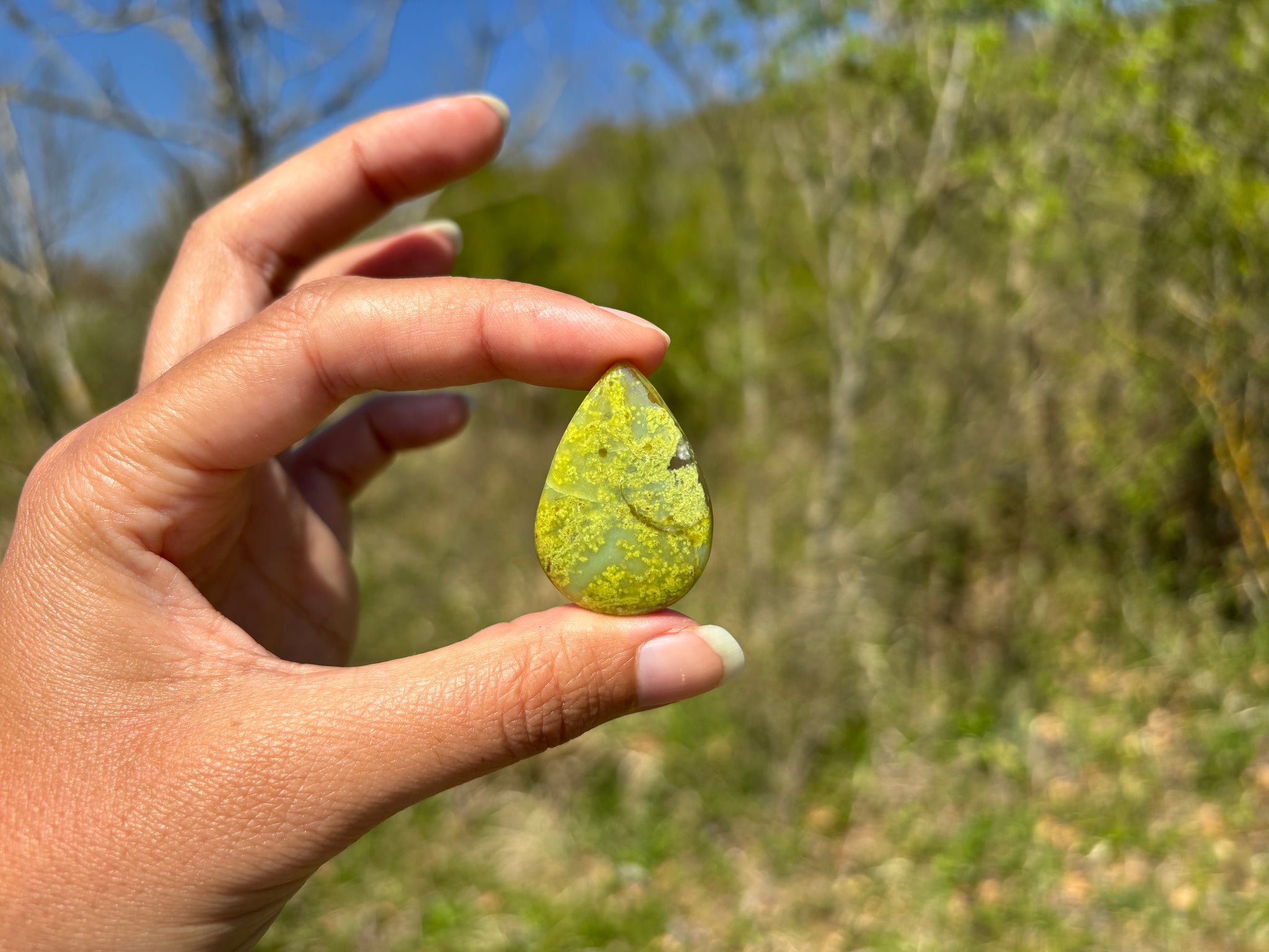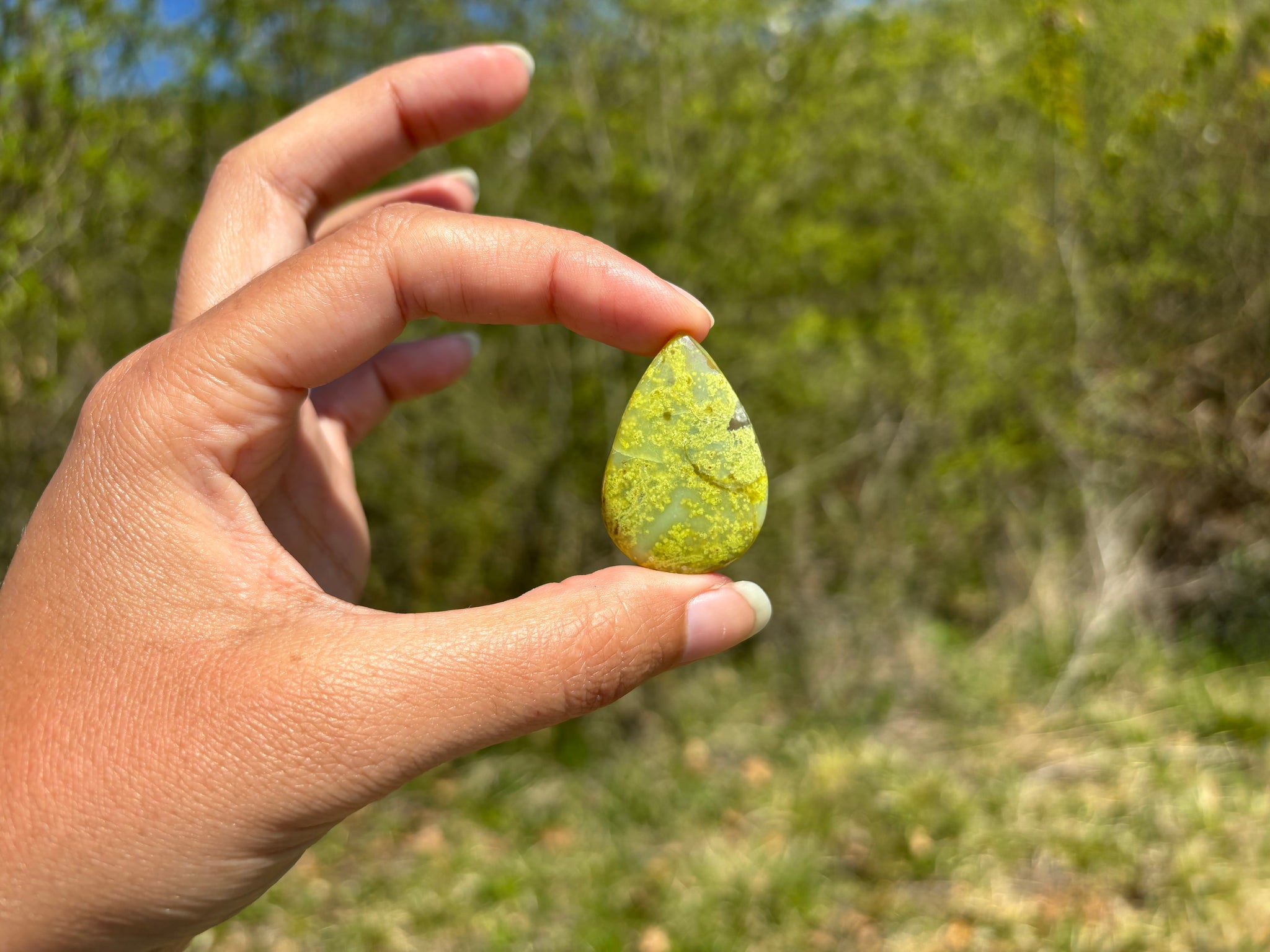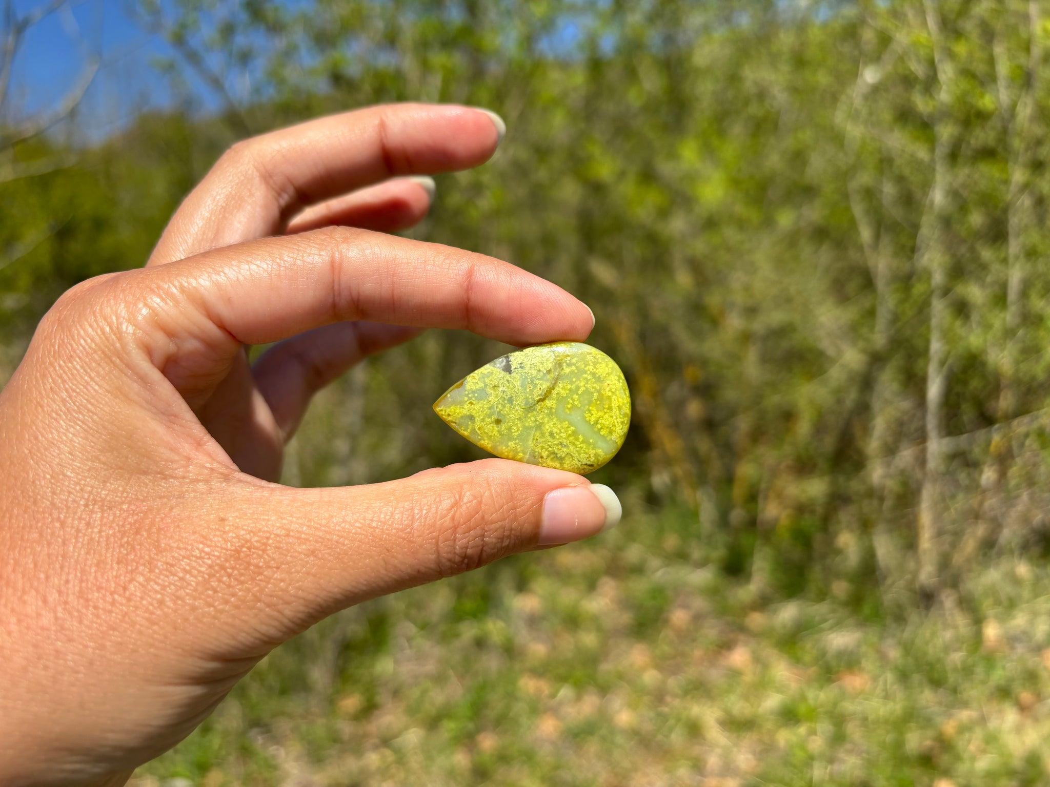 Cabochon en opale commune verte.