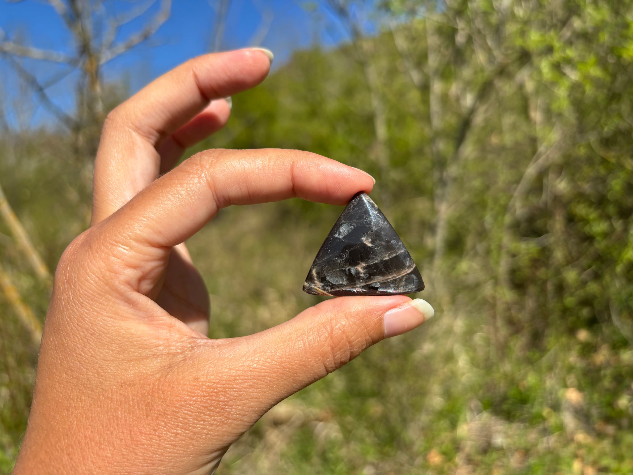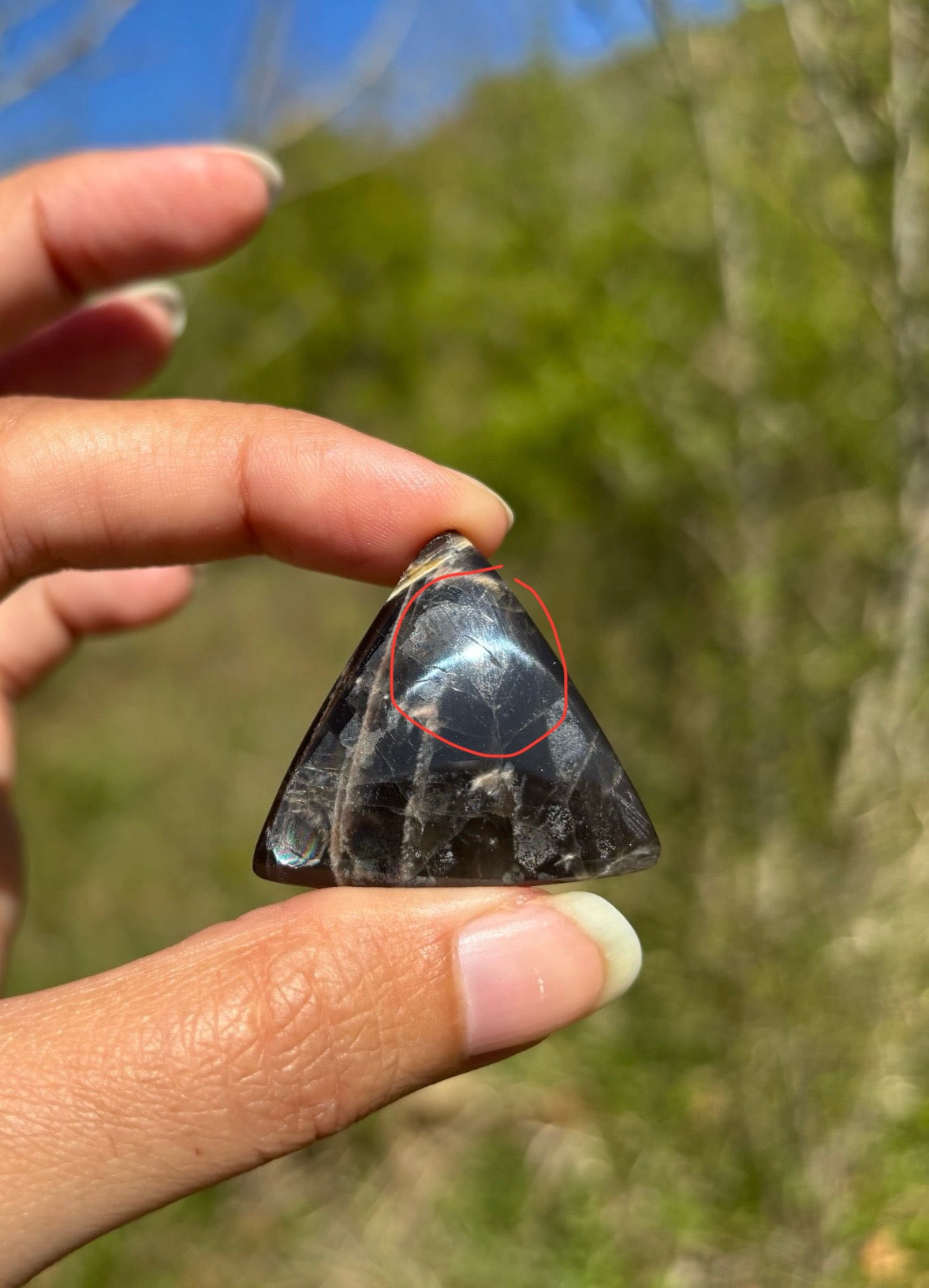 A savoir: Le nom pierre de lune est un nom commercial. Officiellement fait parti du groupe des feldspath. C'est le nom que l'on donne généralement à l'orthose. Mais certains feldspah peuvent également hériter de ce nom lorsqu'ils présentent une adularescence, c'est le cas par exemple de l'oligoclase, de la labradorite, de la perthite, de certains microclines,...