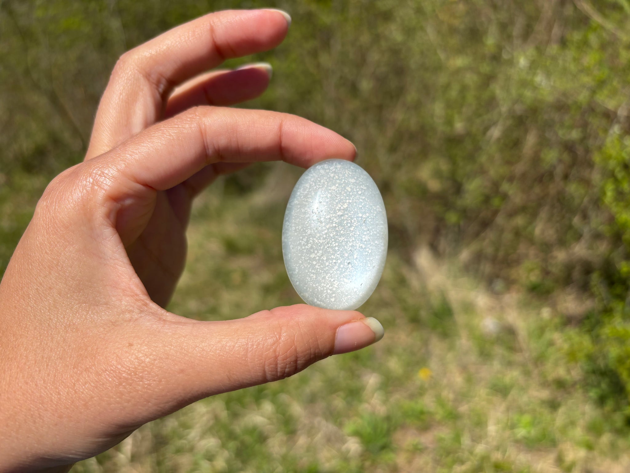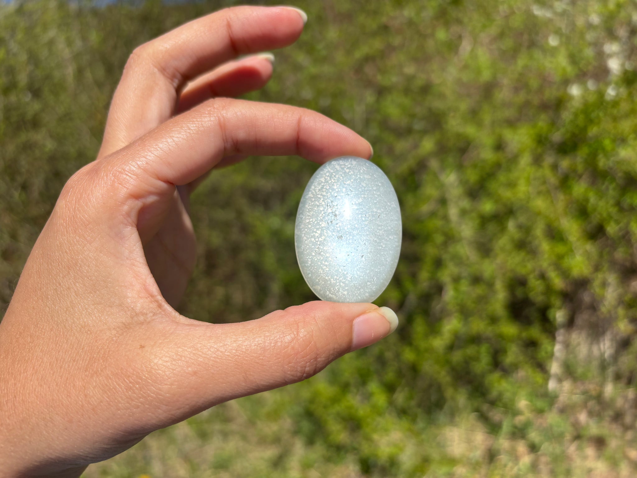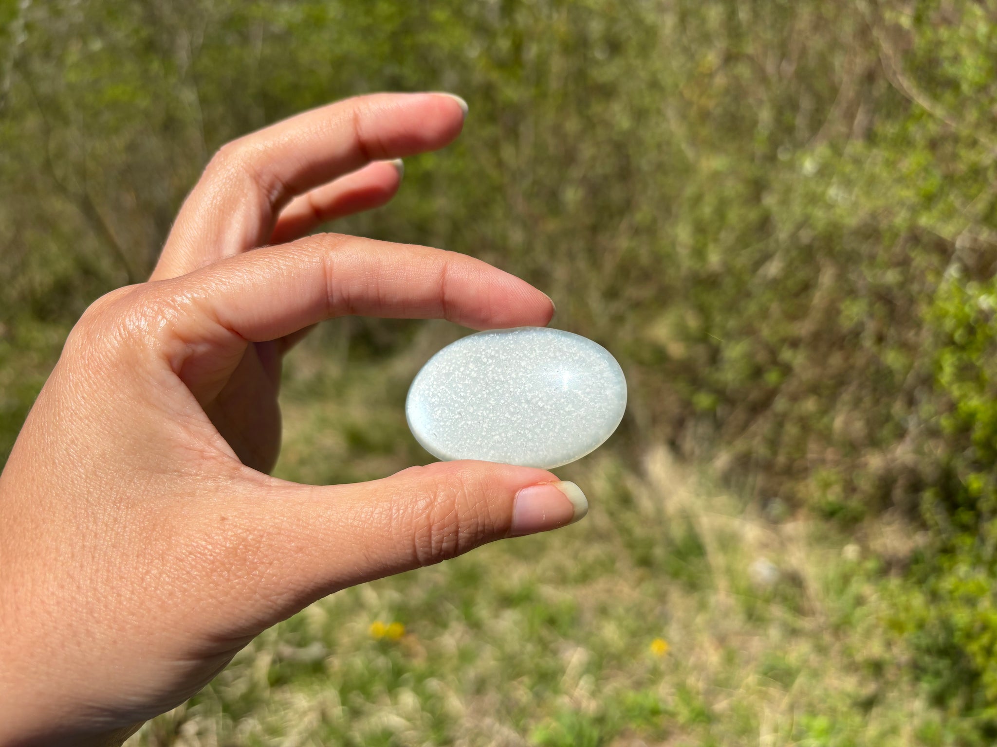 A savoir: Le nom pierre de lune est un nom commercial. Officiellement fait parti du groupe des feldspath. C'est le nom que l'on donne généralement à l'orthose. Mais certains feldspah peuvent également hériter de ce nom lorsqu'ils présentent une adularescence, c'est le cas par exemple de l'oligoclase, de la labradorite, de la perthite, de certains microclines,...