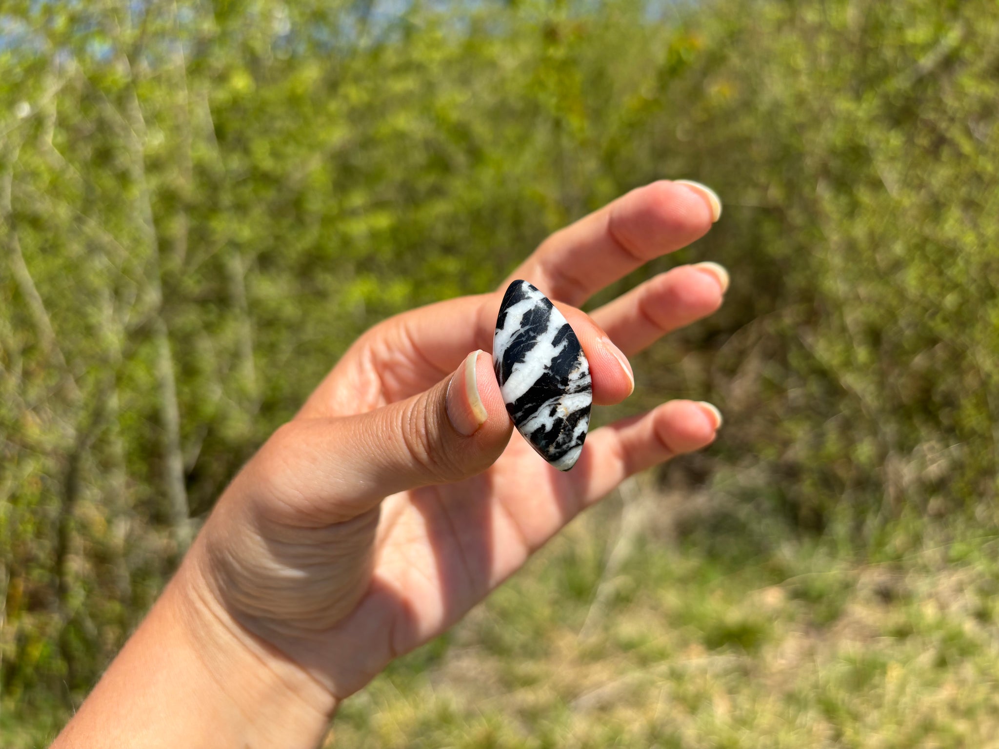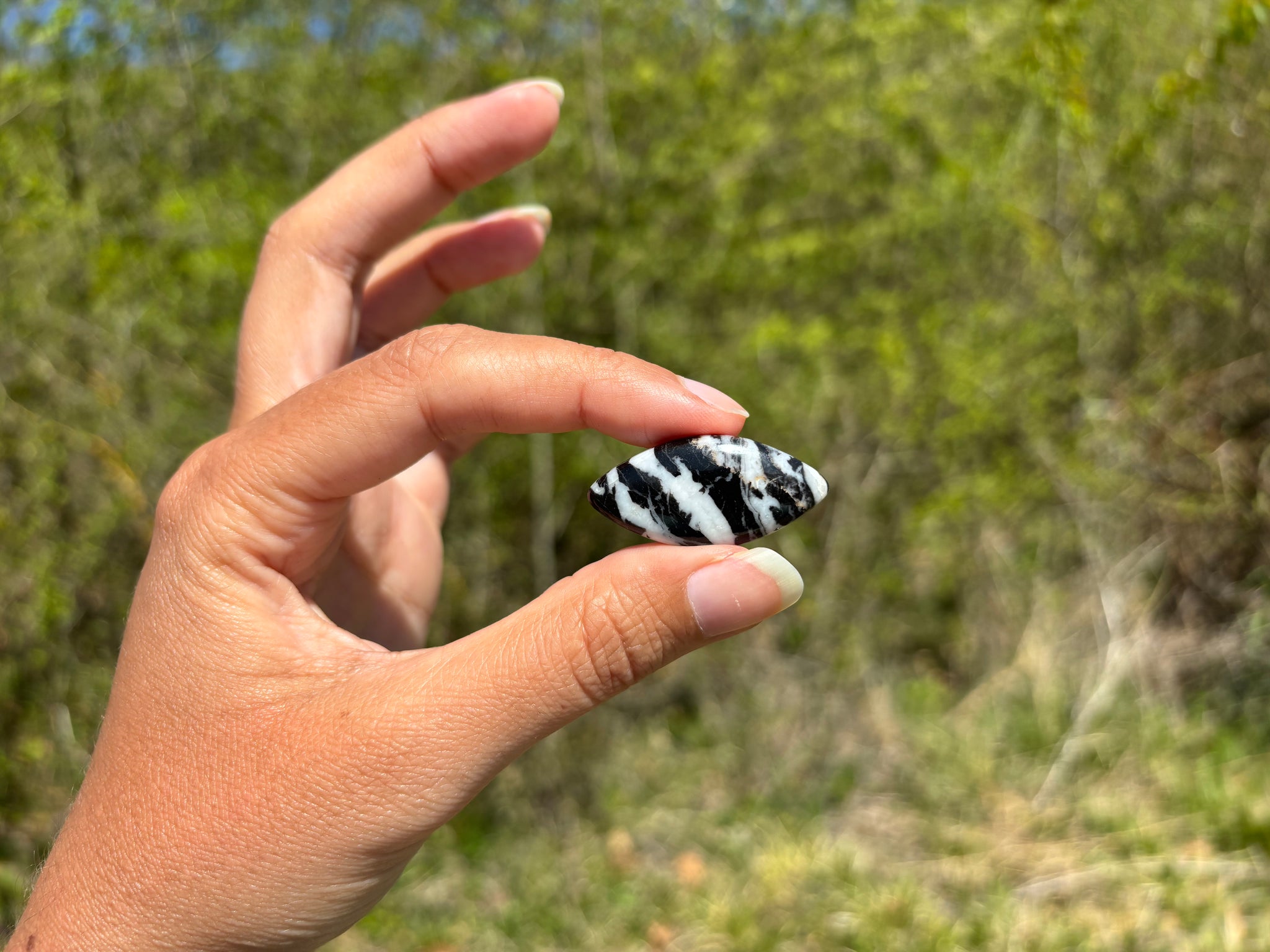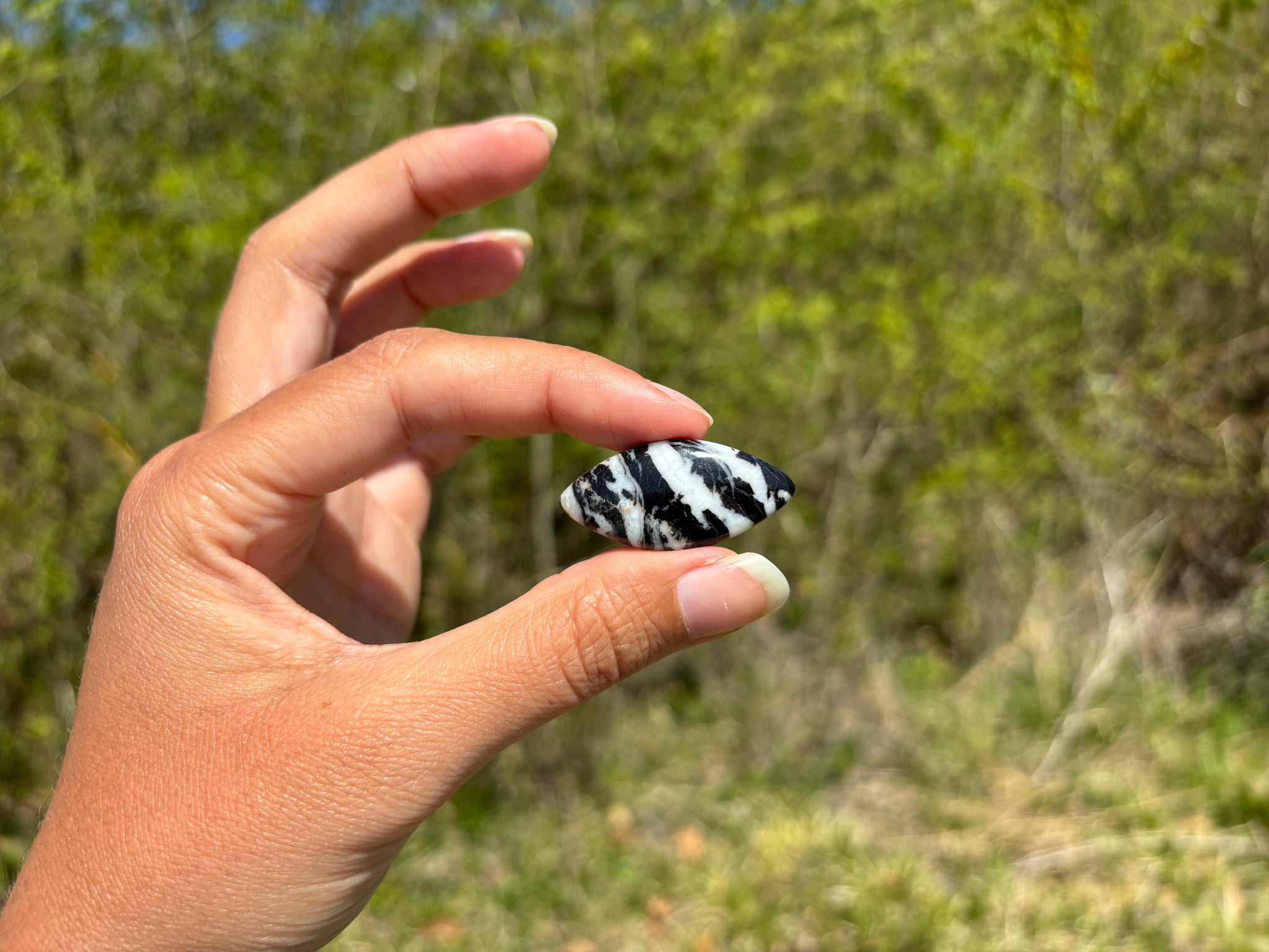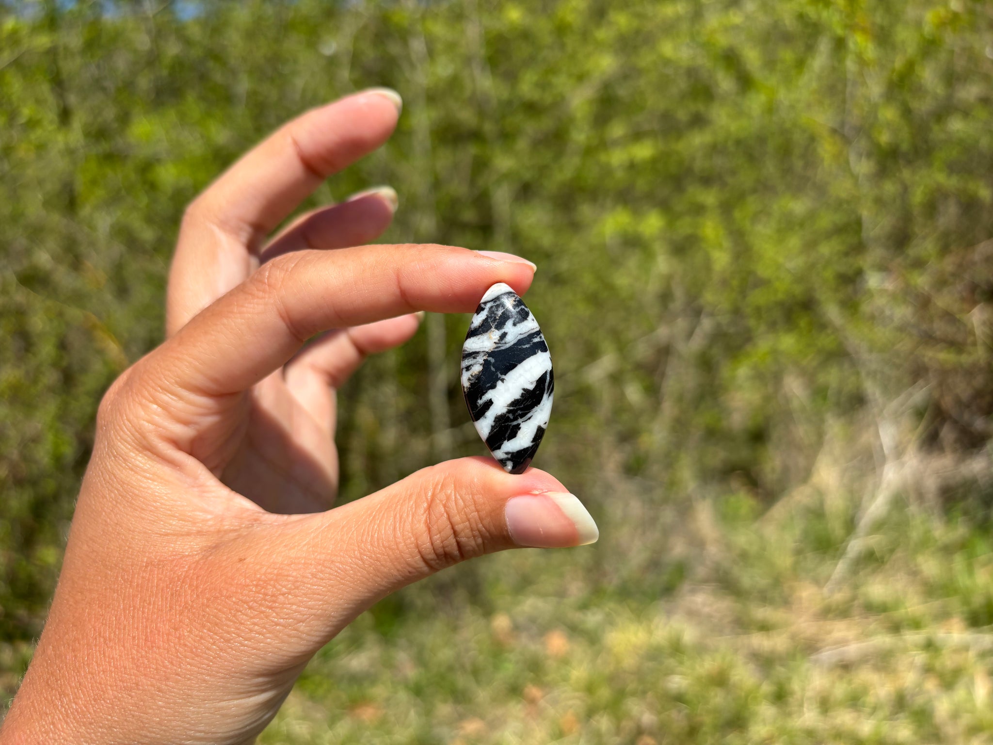 Cabochon en jaspe zebré noir.