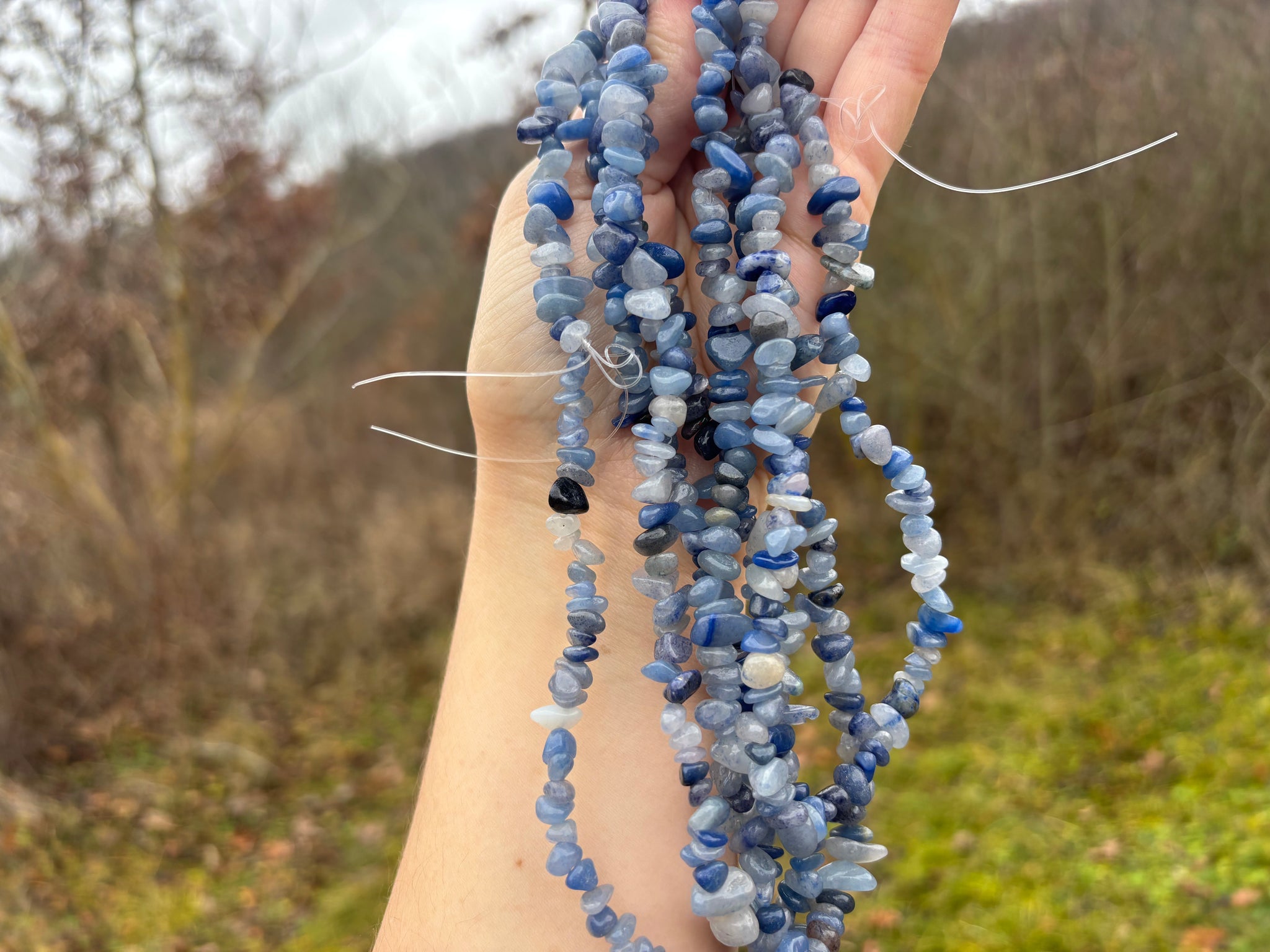 La forme chips est le résultat de petit débris d'aventurine qu'on polis ensuite afin de ne pas avoir de perte. Ce sont des chutes de taille de formes plus grandes.