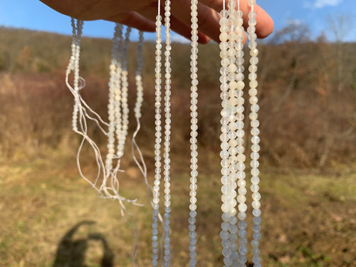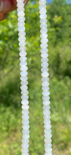 Perles en pierre de lune blanche facettées entre 2 et 4,5mm
