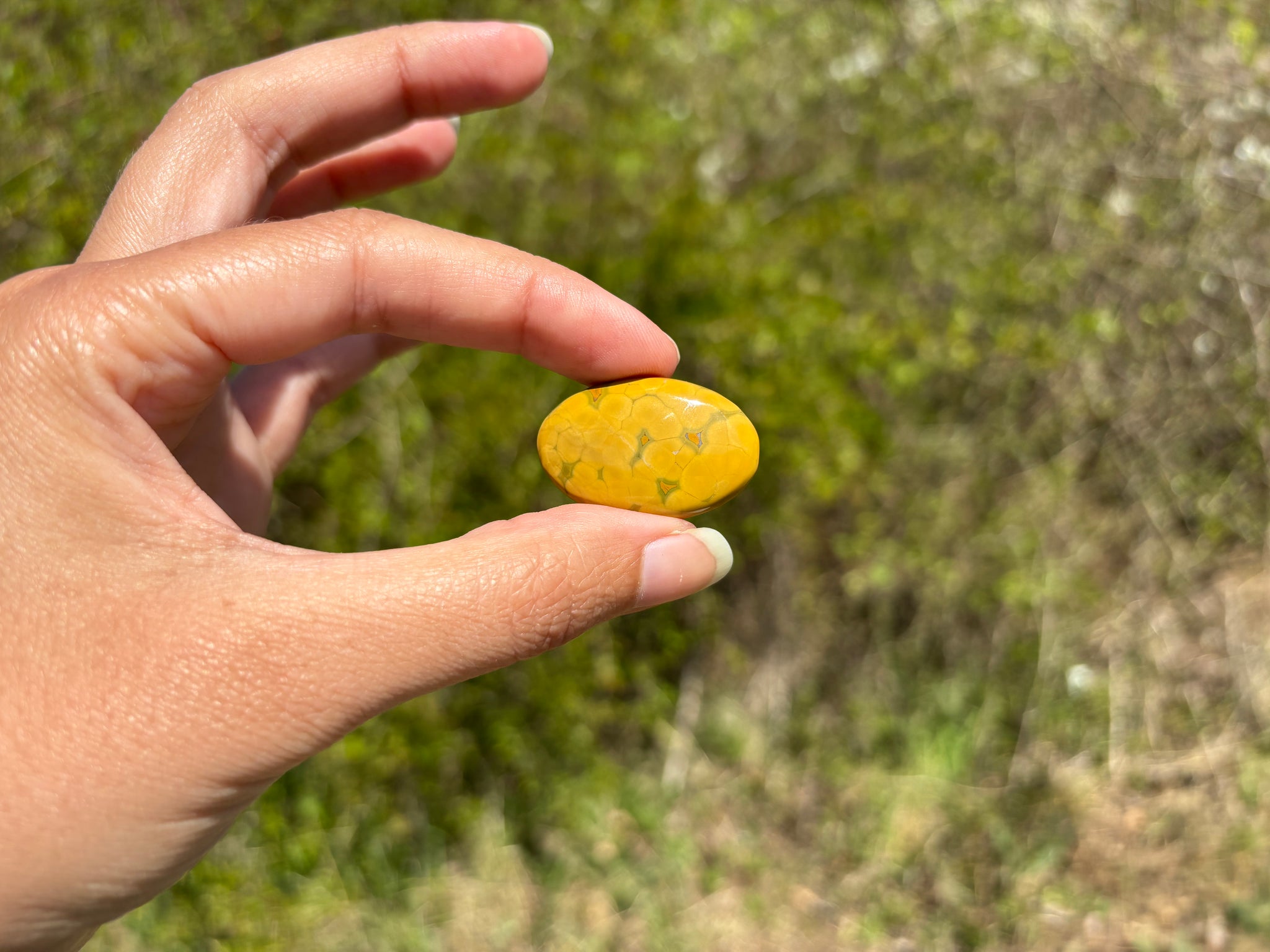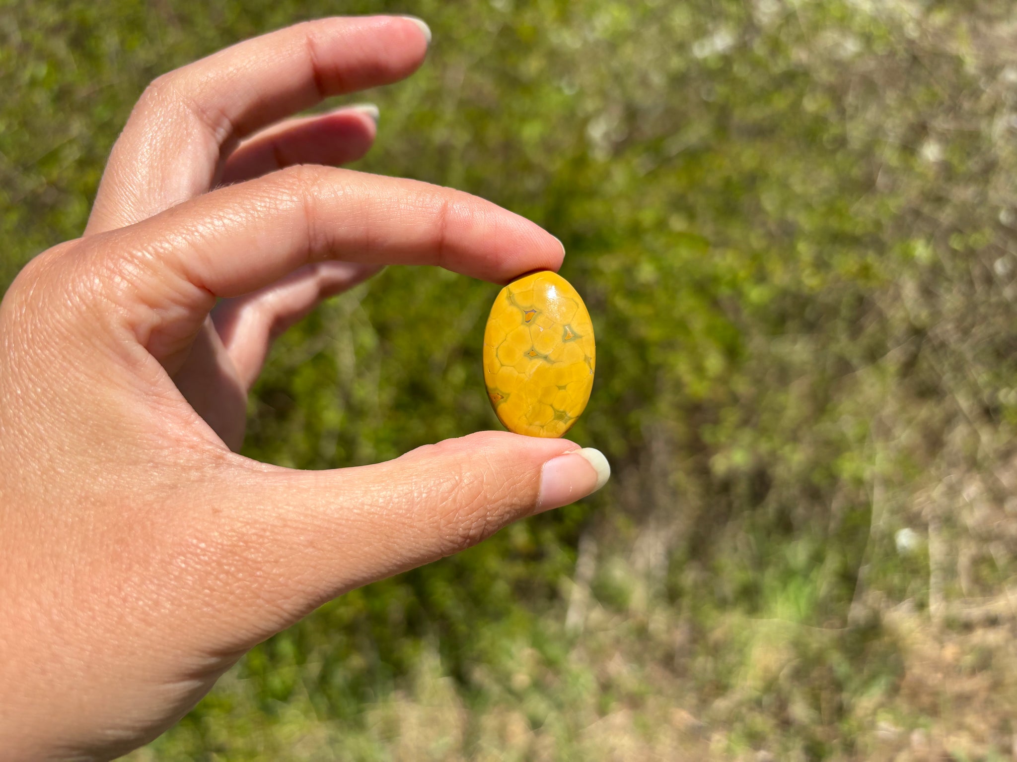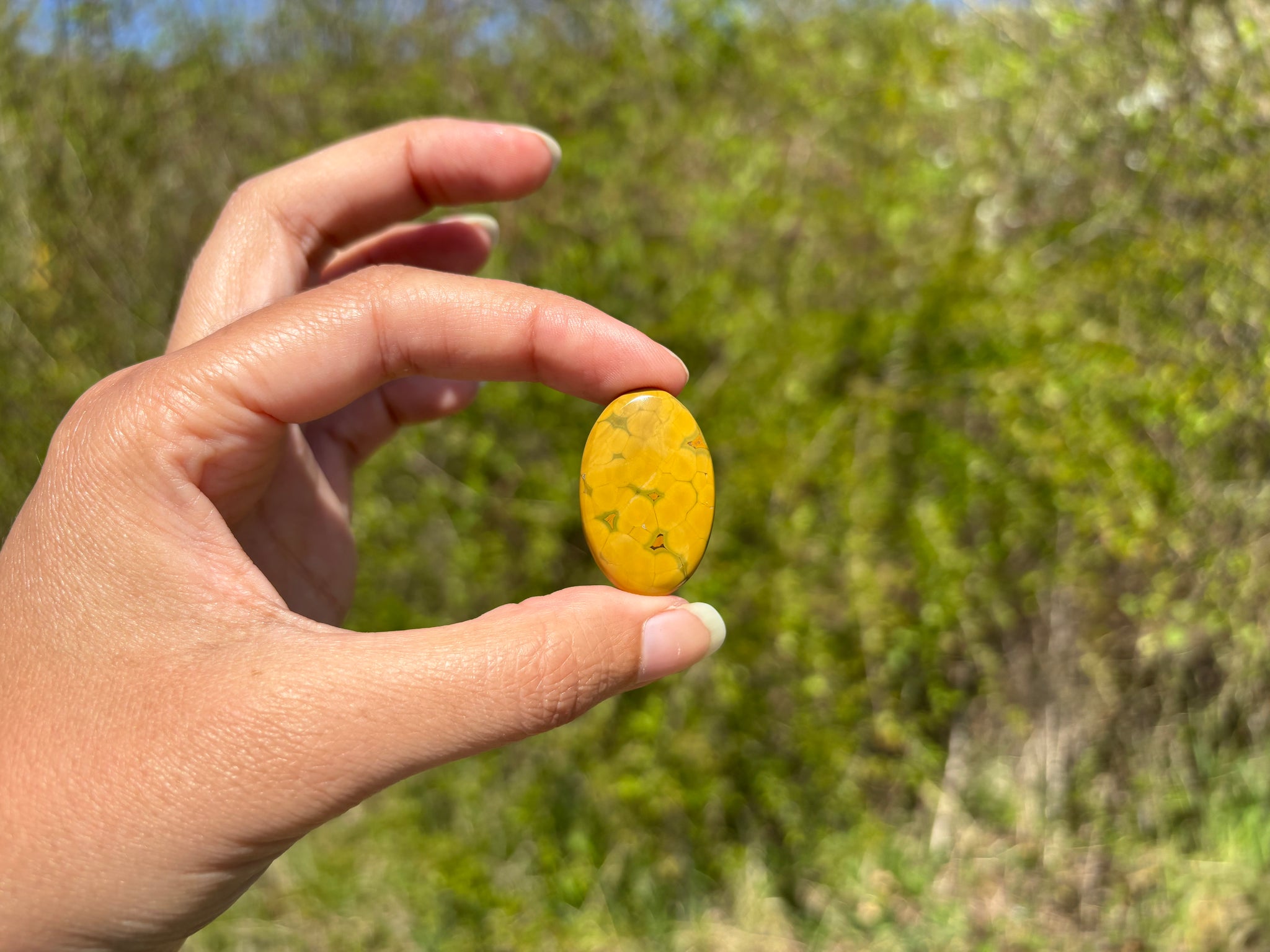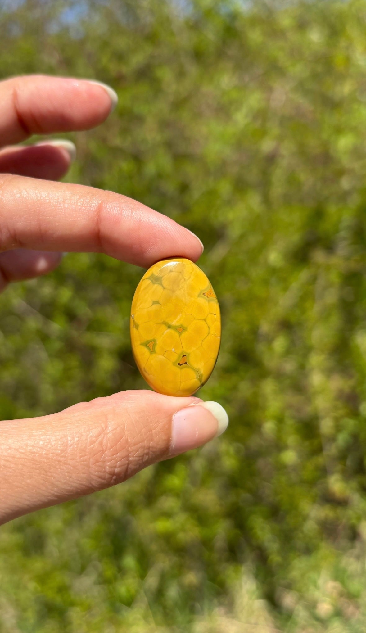 A savoir: Le jaspe océan un nom commercial pour une calcédoine spherulitic d'après les travaux de recherche du Docteur Werner Lieber. On l'appelle régulièrement jaspe orbiculaire. On y voit souvent des motifs sphériques caractéristiques.