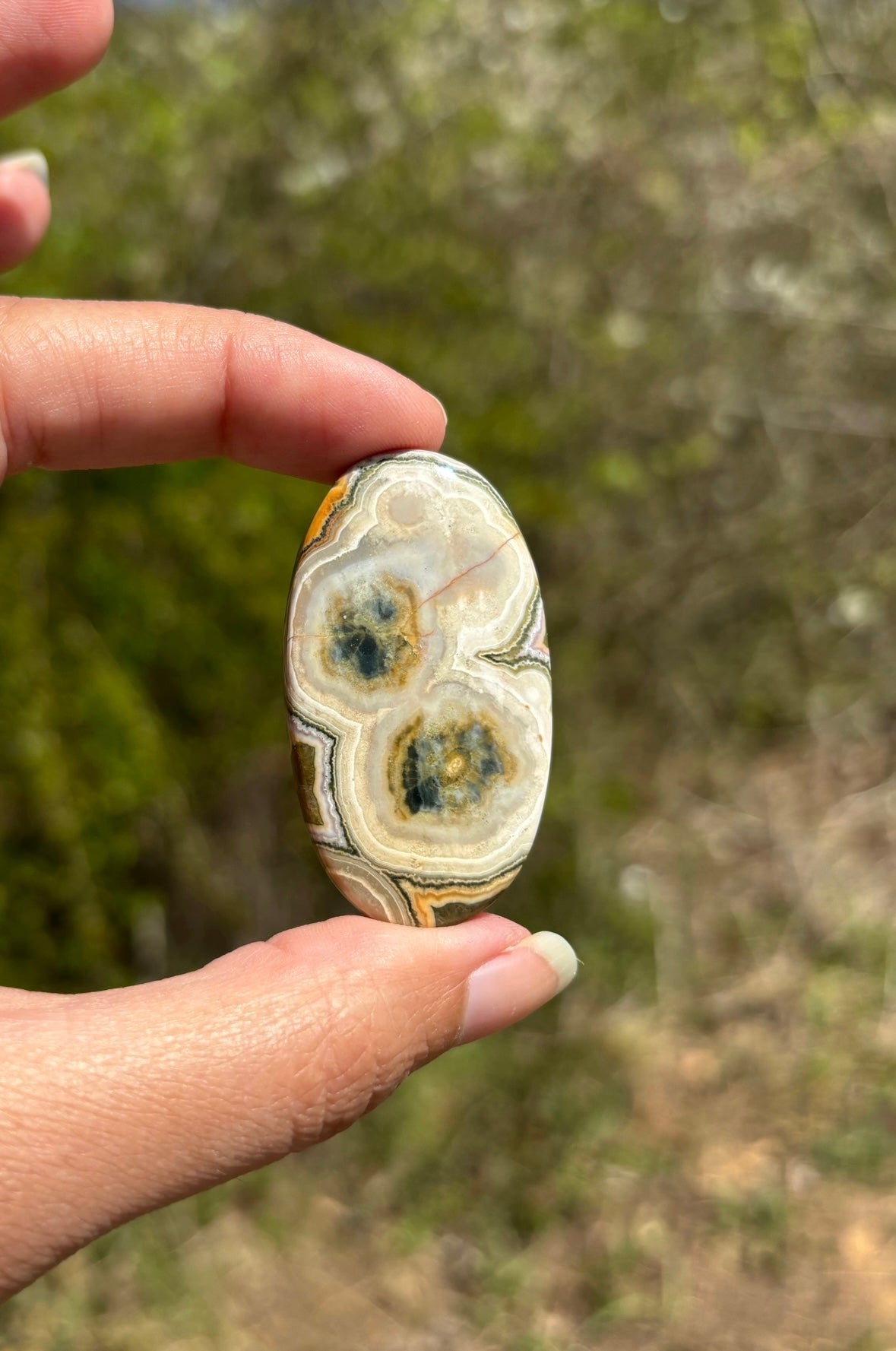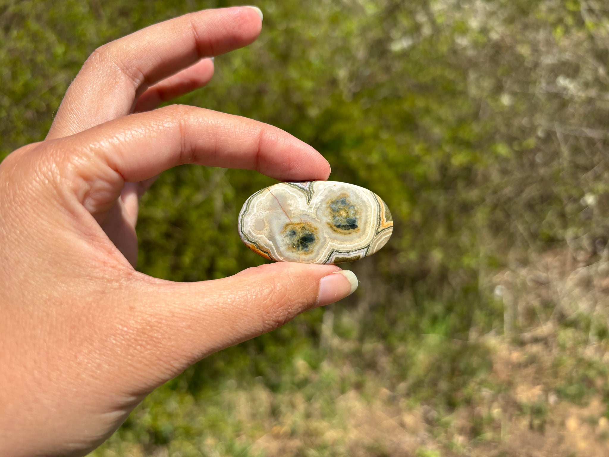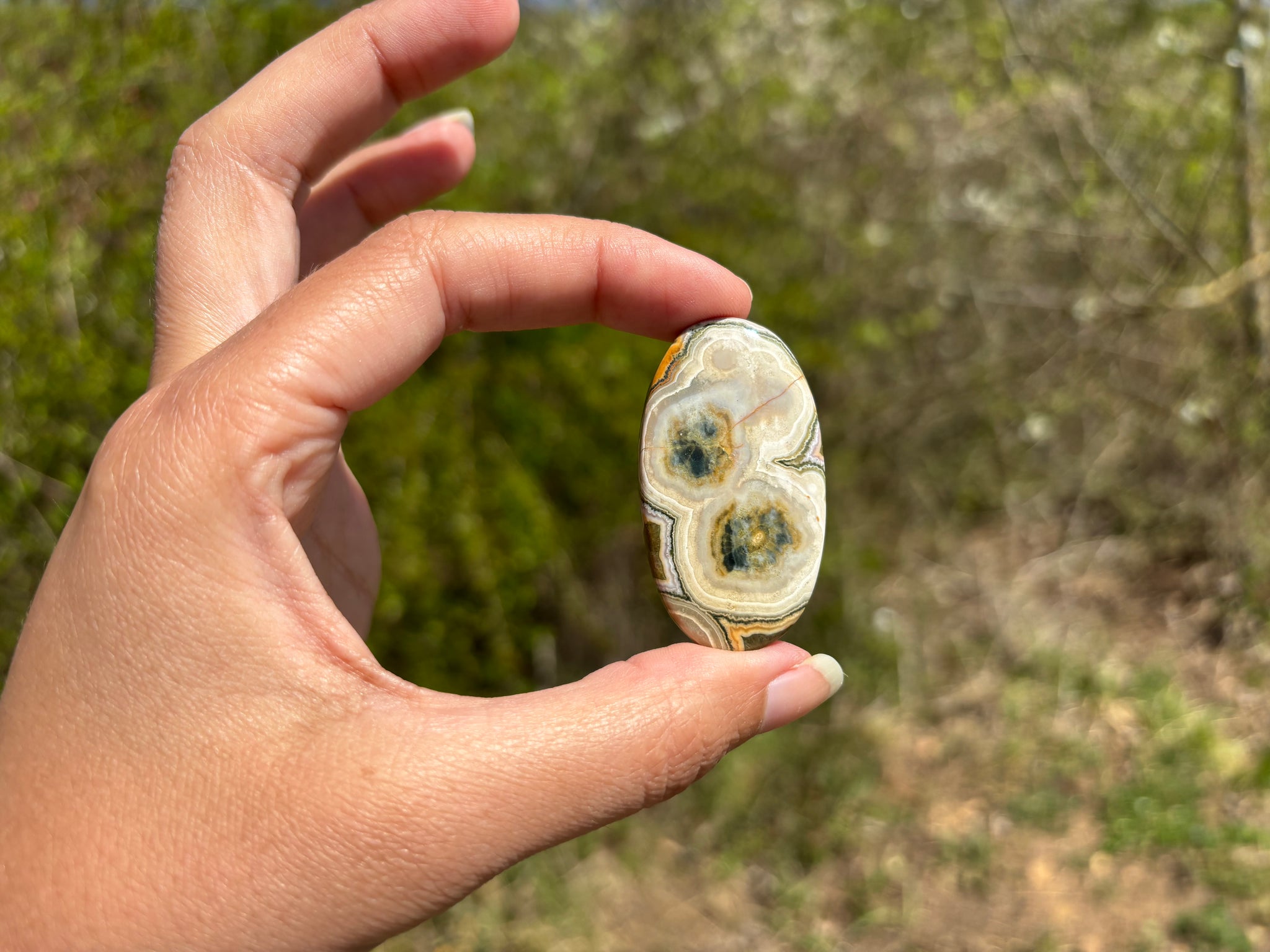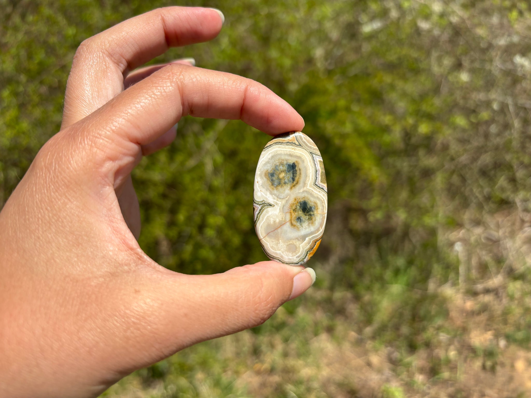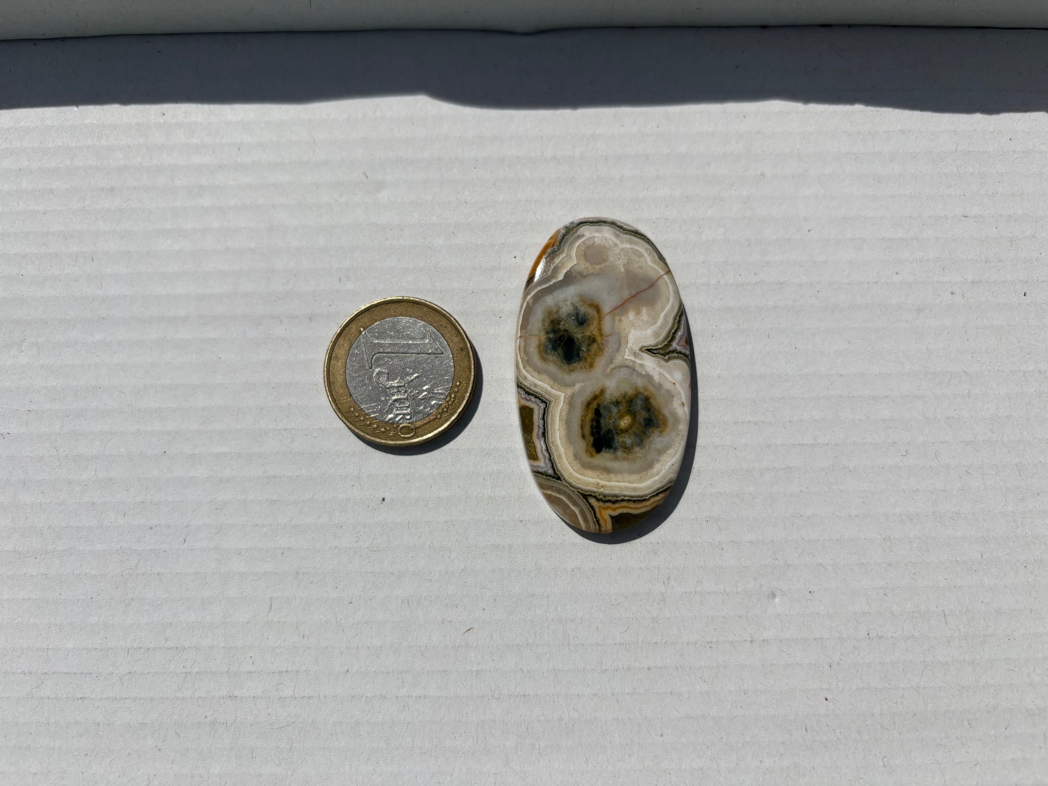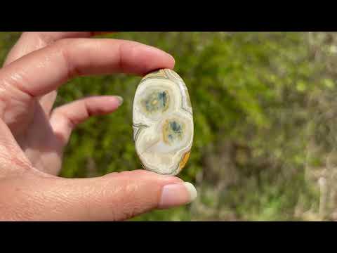 A savoir: Le jaspe océan un nom commercial pour une calcédoine spherulitic d'après les travaux de recherche du Docteur Werner Lieber. On l'appelle régulièrement jaspe orbiculaire. On y voit souvent des motifs sphériques caractéristiques.