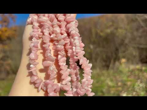 La forme chips est le résultat de petit débris d'opale rose qu'on polis ensuite afin de ne pas avoir de perte. Ce sont des chutes de taille de formes plus grandes.